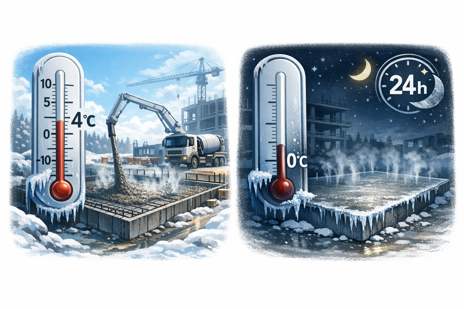 24시간 동안 일최저기온 0℃ 이하가 예상되는 조건에서 시공되는 콘크리트를 말합니다.